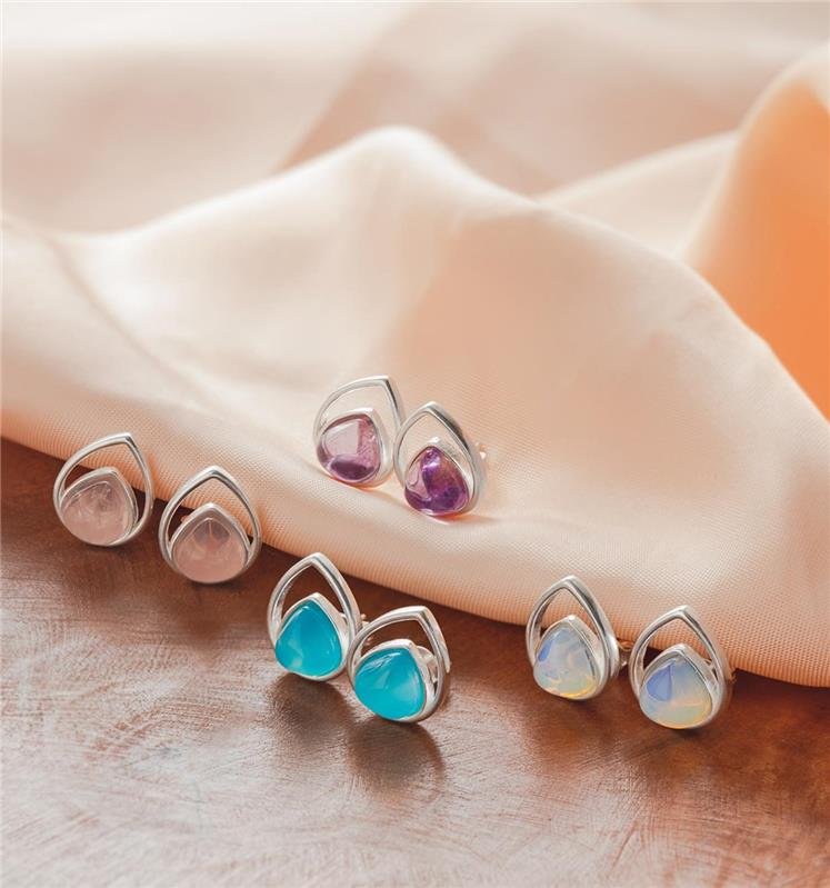 Brinco em prata 925 com pedra natural e design vazado em formato de gota, moderno e sofisticado, ideal para destacar o look.