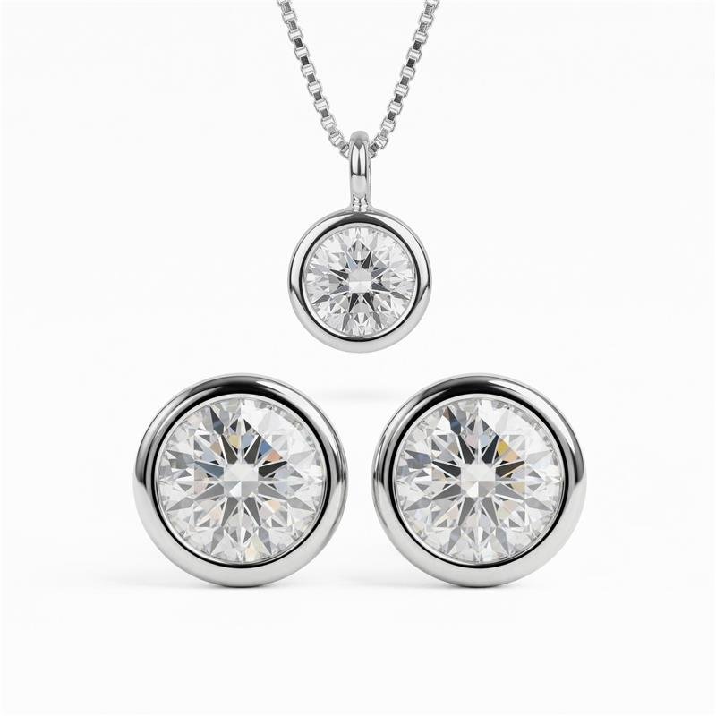 Conjunto em prata 925 com ponto de luz círculo ou coração em zircônia, com cravação inglesa e banho de ródio. Um mimo clássico ou romântico que valoriza o colo com delicadeza.
