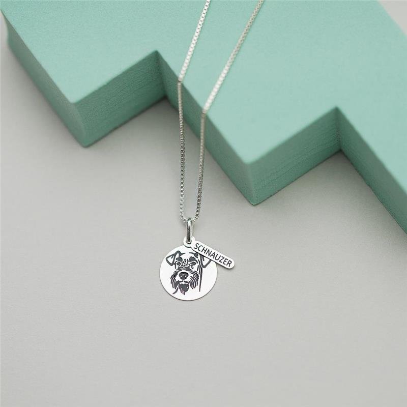 Pingente com o desenho marcante do Schnauzer, com seu perfil inconfundível. Ideal para quem ama esse companheiro inteligente e protetor.